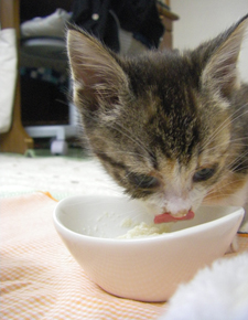 彼女は開口一番に言いました。 祖母:「猫ミルクがいいよ!!」 いや、茶トラ②もう歯生えてるから・・・ 祖母:「猫には猫ミルクがいいよ!!」 いや、だからばあちゃん・・・茶トラ②もう歯生えてるから・・・ミルクは・・・ 祖母:「いーや!!猫ミルク試してみようよ!!」 ・・・わかりました。(゜д゜;) で、試してみました。 結果、 飲みました。 おばあ様愛してるぅぅぅぅううう!!!\(゜▽゜*)/ うおお!!飲む!! 夜までに一日量の半分は飲みました!! 昨日の1/3よりいい!! なにより楽!! あ、茶トラ①元気になりました!! 一番体が大きいからすぐ良くなったのかな?