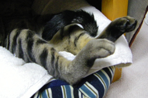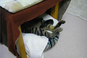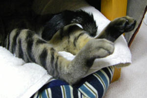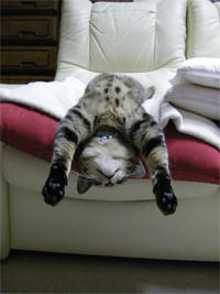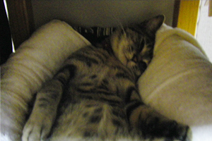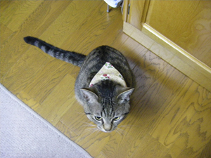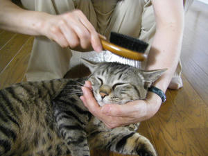 うしっ!!さのすけ!!(←先住猫)オマエ新しい猫ブラシの実験台・・・もとい、一番客になれ!! さのすけ:「・・・・」 逃げないので気持ちがいいようです・・・たぶん。